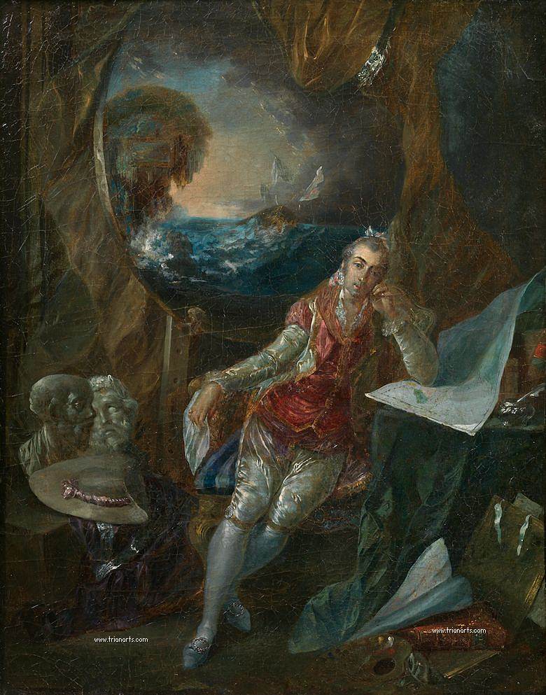 1775 en el exilio realiza retratos como el de su mujer María de las Nieves Micaela Fourdinier (1780), su exótico Autorretrato (1776), el melancólico Retrato en el estudio (1786) o Retrato de un oficial de marina (1786).