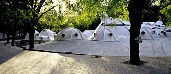 La tradicional elaboración en arcilla se sustituye aquí en esteras metálicas y hormigón.