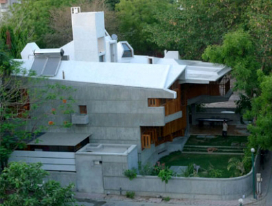 A su regreso de París y tras en 1956 abrir su despacho en Ahmadabad, erige su casa en esa ciudad (1959-1961 ampliada en 1987).