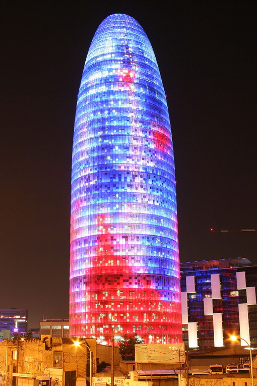 La torre Agbar (2000-20059 de 142 metros de altura, anterior sede de la Compañía de Agua de Barcelona, está realizado con un revestimiento soportante exterior y ventanas distribuidas irregularmente en forma de retícula cuadrada.