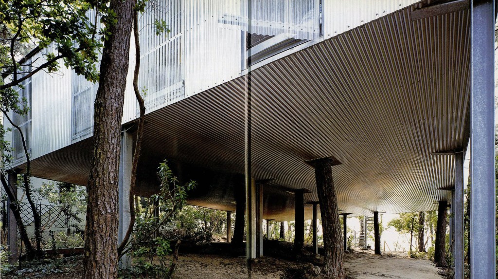 House Lege-Cap Ferret.La primera muestra de esta línea de trabajo la dieron en la Casa Latapie (1991-93) en Floriac, Burdeos, donde respondieron al bajo presupuesto disponible con materiales propios de las construcciones industriales, y otros usados en invernaderos. Este empleo de elementos industrializados se combina con una declaración de amor a la naturaleza en la Casa en Lège-Cap Ferret (1996-98), en la bahía de Arcachon, construida en una parcela boscosa respetando todos sus árboles, empezando por los que quedaron englobados dentro de la construcción.
