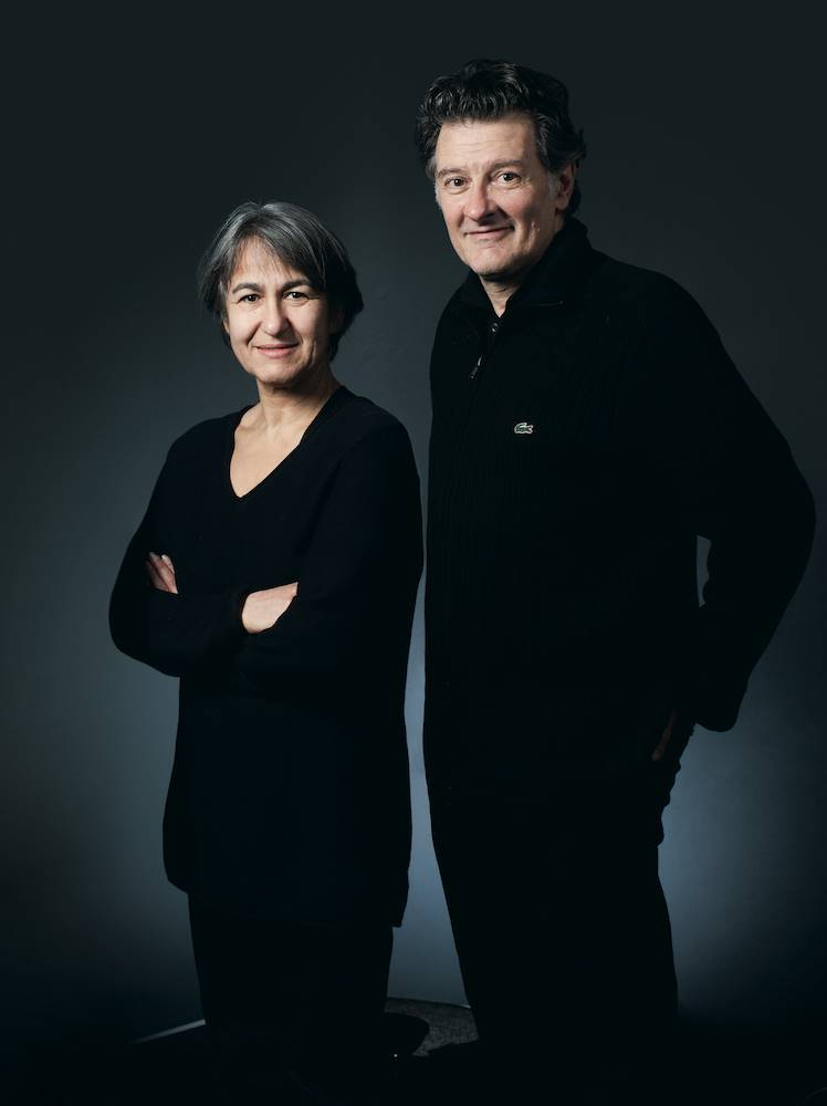 French architects Anne Lacaton (L) and Jean-Philippe Vassal (R) pose at their worshop in Montreuil, outside Paris, on March 16, 2021. – The Pritzker Prize — architecture’s most prestigious award — was awarded to French duo Jean-Philippe Vassal and Anne Lacaton for their affordable, eco-friendly spaces that prioritize the well-being of the many. (Photo by JOEL SAGET / AFP)