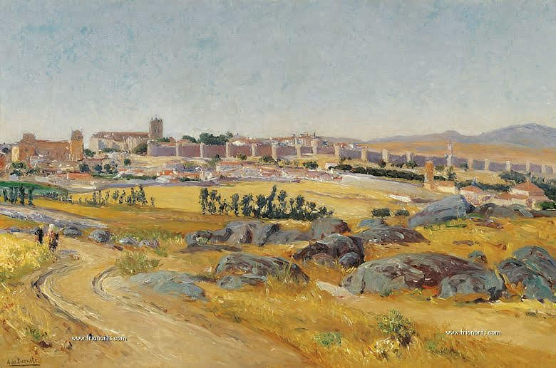 De su maestro Carlos de Haes, comprende que es imprescindible realizar el paisaje tomado directamente del natural, pero como es lógico en un discípulo 20 años más joven toma otros motivos distintos y sobre todo se centra en la representación de la naturaleza de la luz, algo que explotan los impresionistas, aunque no son los únicos que lo hacen en el último tercio del siglo XX.