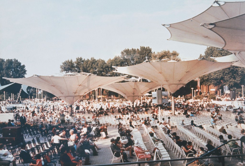 El pabellón de alemán resultante en exposición 67, creado en colaboración con Rolf Gutbrod y Fritz Leonhardt, aporta reconocimiento internacional a Frei Otto como arquitecto e ingeniero de diseño.