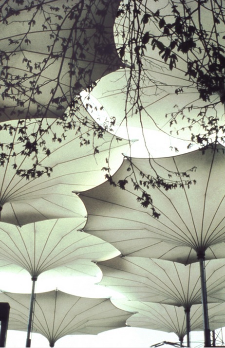 1955, diseña y construye (junto con Peter Stromeyer) tres estructuras temporales ligeras hechas de tela de algodón para el Bundesgartenschau (Exposición Federal de Jardines) en Kassel, Alemania.