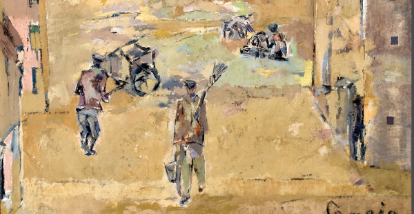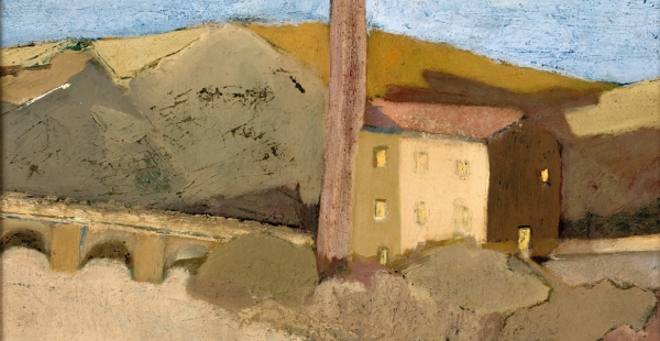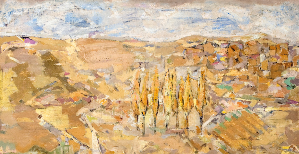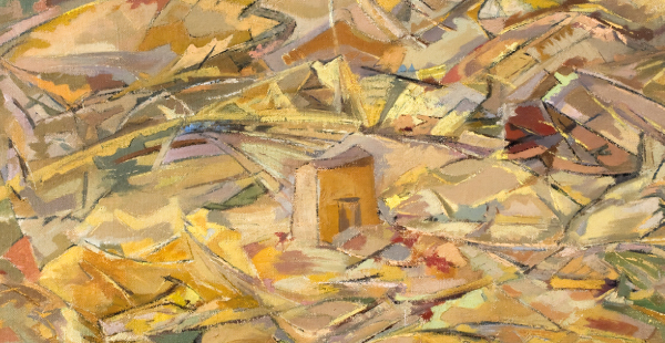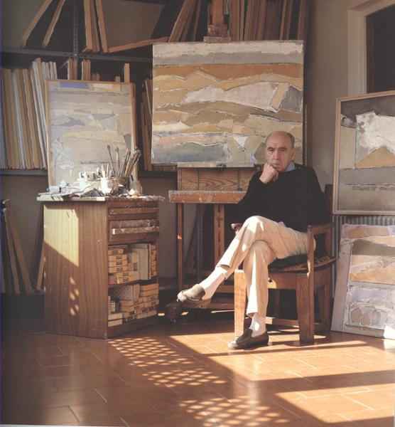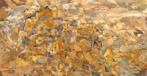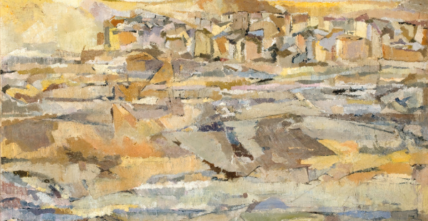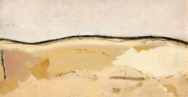 No pinta del natural, será en su memoria donde surgen las formas, los colores recordados, reducidos a ocres, amarillos, grises, pardos y rosas, un paisaje interior.