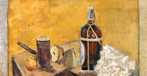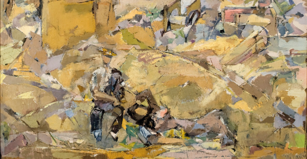 Paisajes acompañados a veces de porrones, hogazas, manzanas, campesinos, segadores, etc., pintura parca, seca, aristada debajo de la cual siempre existe una arquitectura, un esqueleto, una geometría cubista.