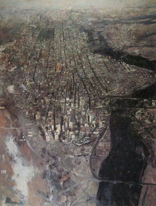 En su última época el pintor desarrolla una estrategia productiva mediante la que logra intemporalizar el instante, como ocurre en sus últimas panorámicas urbanas centradas en la luz del medio día o en su obra escultórica, tan influida por el hieratismo arcaizante que se observa en las figuras del antiguo Egipto.