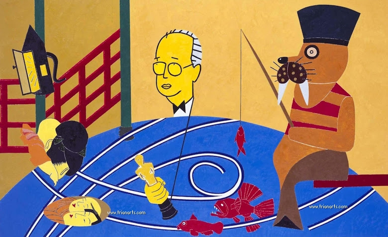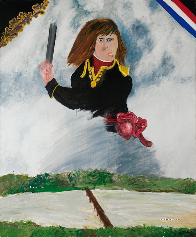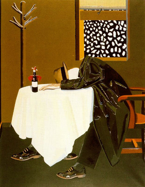 Habría que preguntarse por el interés de Eduardo Arroyo por Ángel Ganivet, al que dedica entre 1977-1979 toda una serie de pinturas que expone en la Galeria Flicker de Paris con el titulo De l´exil ou le suicide dans la Dvina.