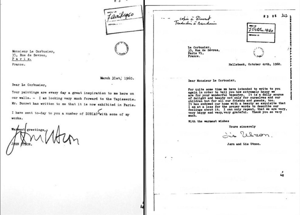 Hace tiempo que quería escribirle para darle las gracias por todo lo que significa, y ha significado, para mí y me permito enviarle mi proyecto para la Ópera de Sídney… Sería para mí una alegría inmensa contar con su participación en la decoración, los tapices y las pinturas de este edificio, y le ruego que me permita saber si podría hacer algo para él de una forma u otra.