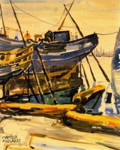 1964 colabora en todos los números de la revista Millares, junto a sus hermanos los poetas José María y Agustín y la pintora Jane Millares Sall, en ella se publica por primera vez su poema Cuadro sin número.