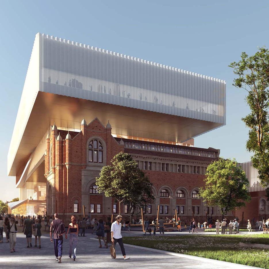 Gana en su ciudad un Kunshall, un centro de arte, cuatro ideas distintas, con una visión trivial, da una imagen de estación de tren de cercanías, pero al entrar es extraordinaria, organizada por varios planos inclinados que se intersectan entre si, con las butacas cada una de un color.