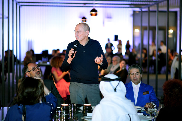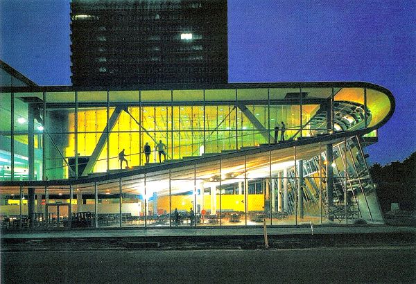 El hace el edificio mas grande, que tiene un centro de espectáculo, una sala de exposiciones y un ferial, el resto se lo concede a compañeros suyos como Jean Nouvelle etc.