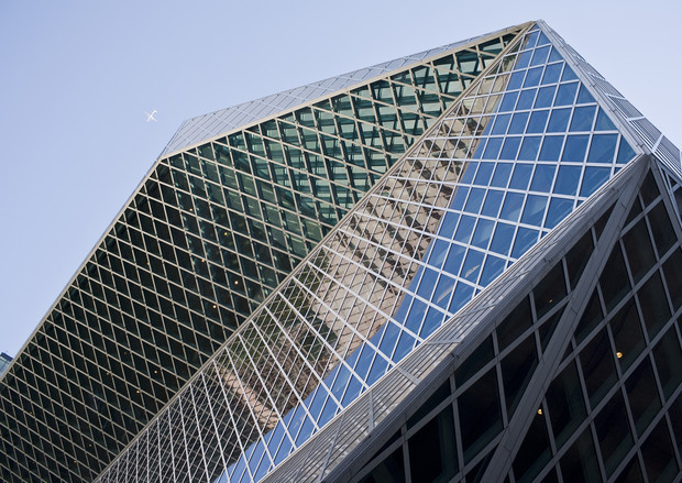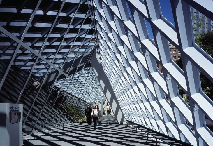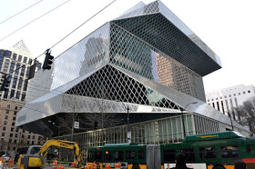 Utiliza la estética Stelz y hace la Biblioteca de Seattle, crea un lugar de memoria en el tejido urbano.