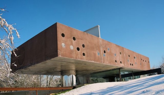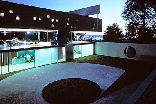 La casa de nuevo es un guiño a los 50 y un homenaje a Le Corbusie, pero al arquitecto mas surreal, que odiaba a los surrealistas pero a veces se encontraba atrapado por ellos.