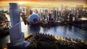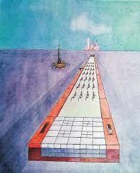 Su primer proyecto en EEUU es la Ciudad del globo cautivo, es un proyecto surrealista, el robo cautivo rodeado de bloques similares a los de Manhattan, sobre los cuales cada uno edifica su sueño, su subconsciente, lo que quiere expresar, pero no sabe cómo.