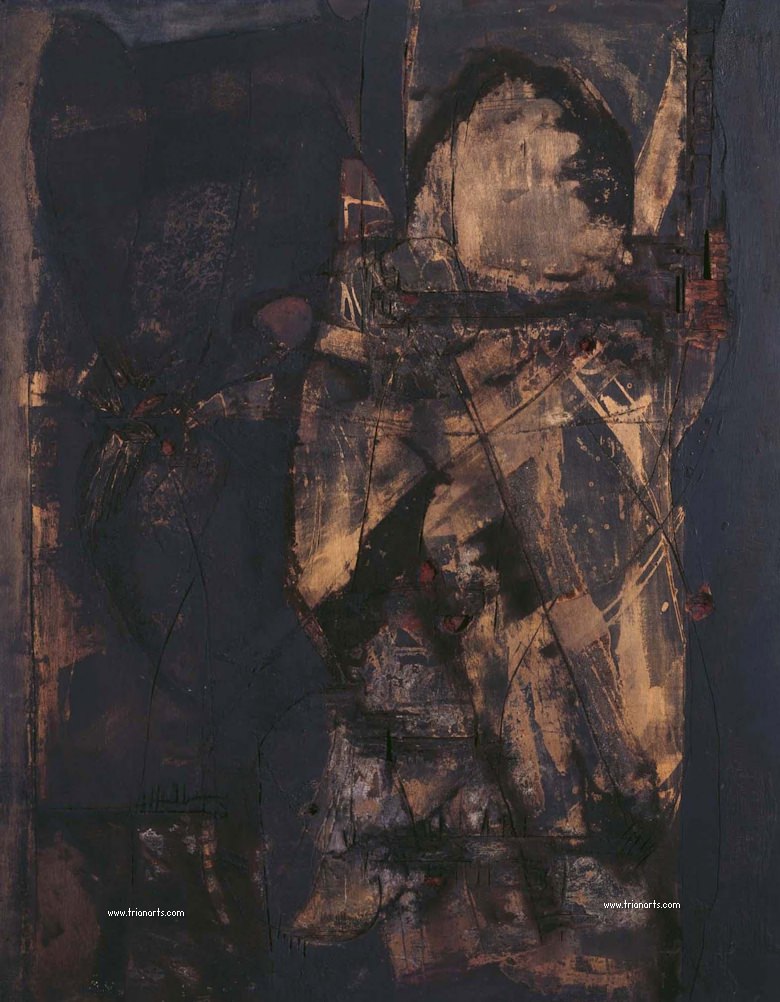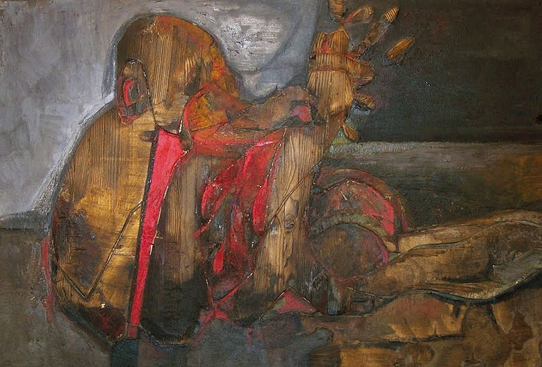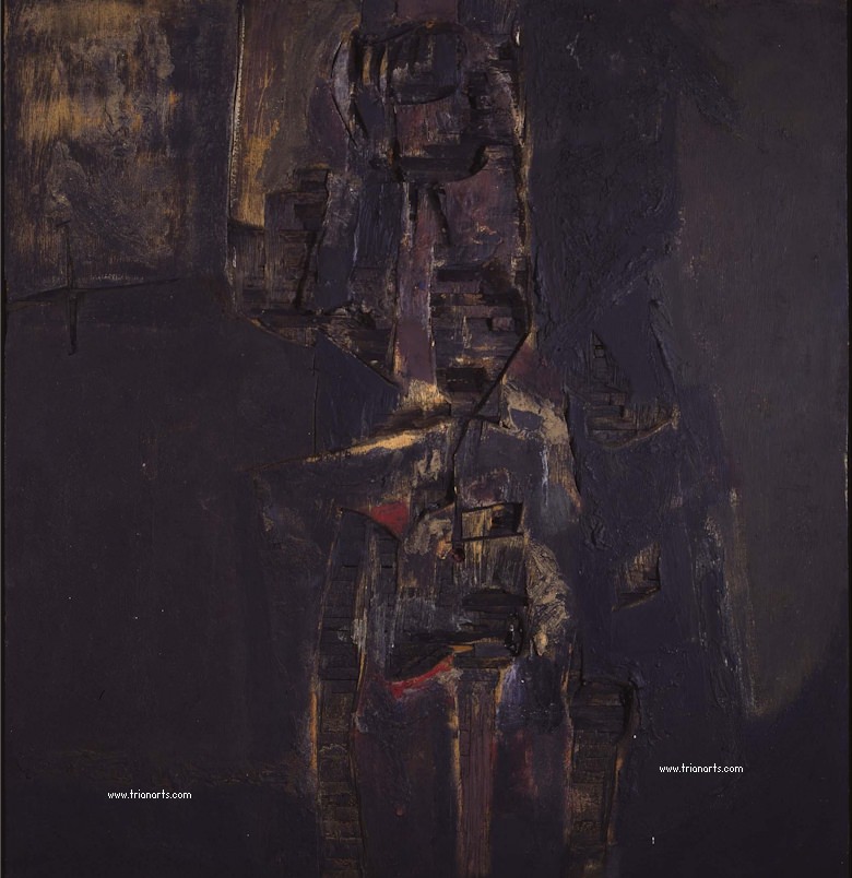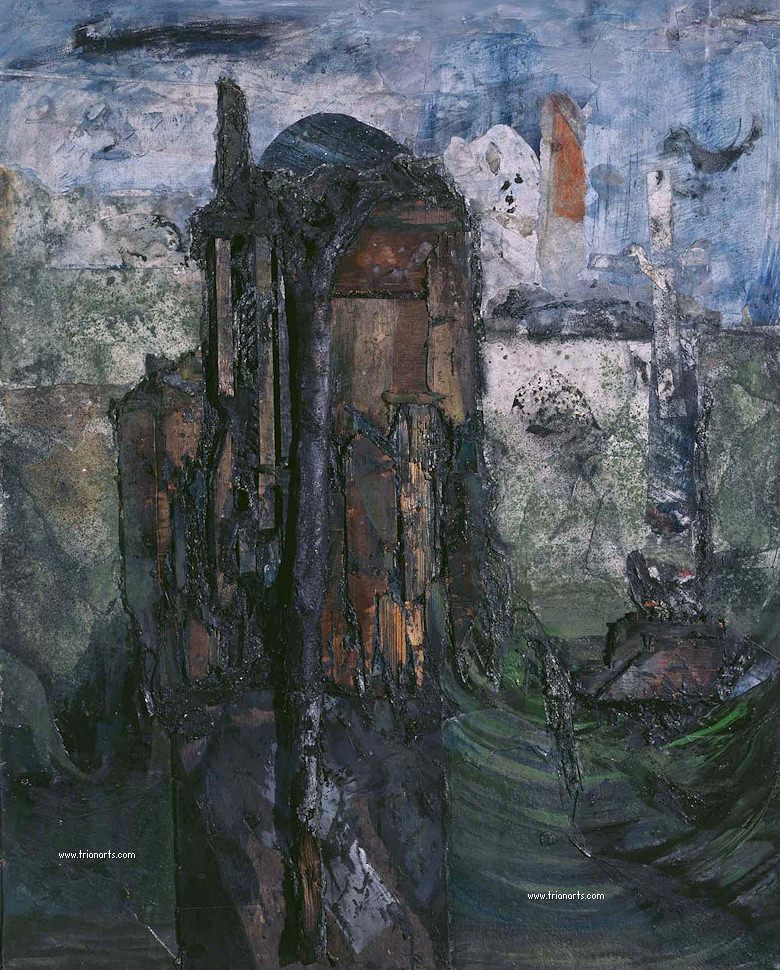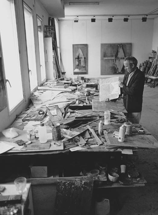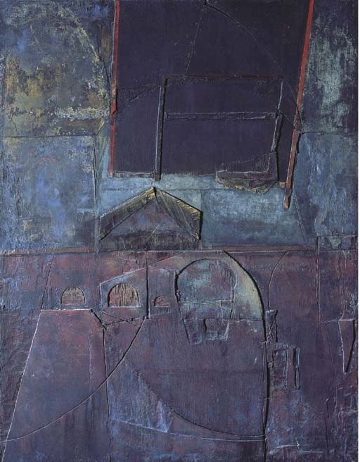 1955 abandona la pintura figurativa y se interesa por las posibilidades plásticas de la materia, comenzando por utilizar polvo de minerales y pigmentos secos que mezclaba con colas y barnices.