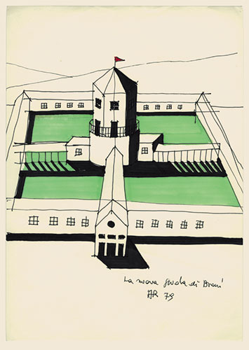 Rossi se interesa inicialmente por el cine, pero al final se dedica a la arquitectura.