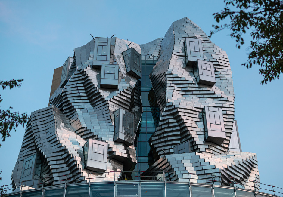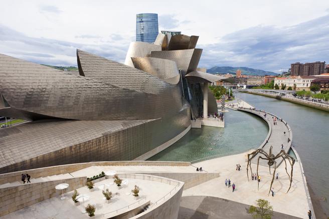 Construida con 10.500 paneles de titanio y hierro, el edificio semeja estar en constante mutación.