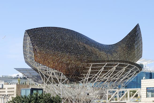El Pez dorado en el Puerto Olímpico de Barcelona, España.