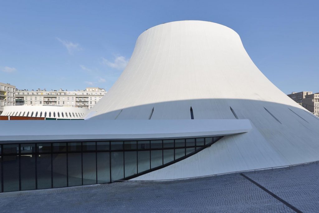 1971, erige la Sede del Partido Comunista Francés, junto con los primeros pasos en el dibujo mobiliario, diez años después lo llaman nuevamente para hacer la Sede del Humanité.
