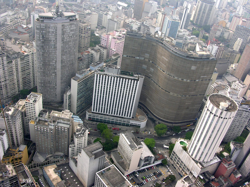 De entre muchas otra construcciones elaboradas por el gobierno brasileño durante los años 50, ninguno ha sido tan moldeado y tan bello como el Copan. Este se caracteriza por una estrecha planta en forma de S y 38 pisos de altura. Las franjas horizontales que actúan como parasoles protegen del extremo calor a sus habitantes.