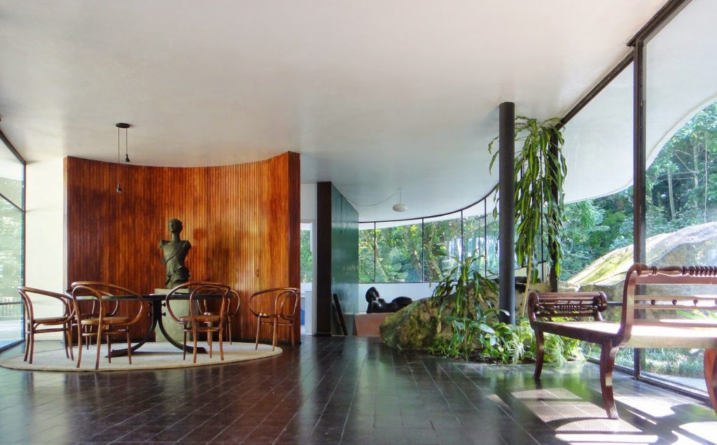1954 desarrolla el proyecto privado Casa Niemeyer en la localidad de Pedro del Rio en Río de Janeiro, que le proporciona prestigio nacional revolucionando la arquitectura brasileña en los años 60.