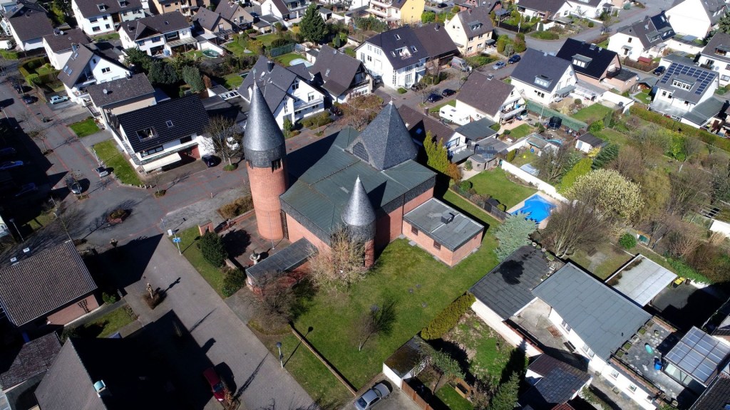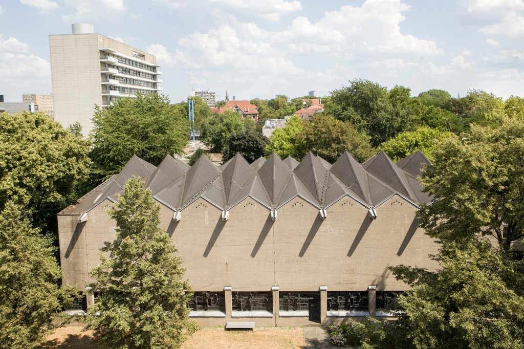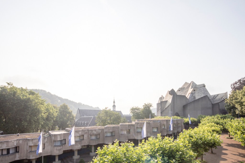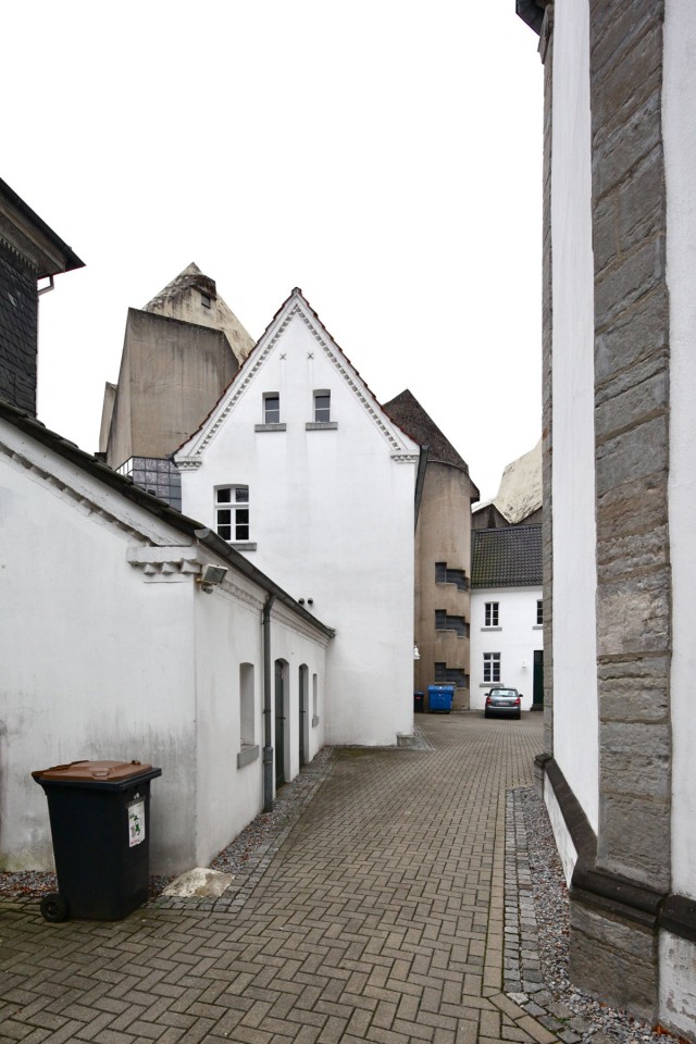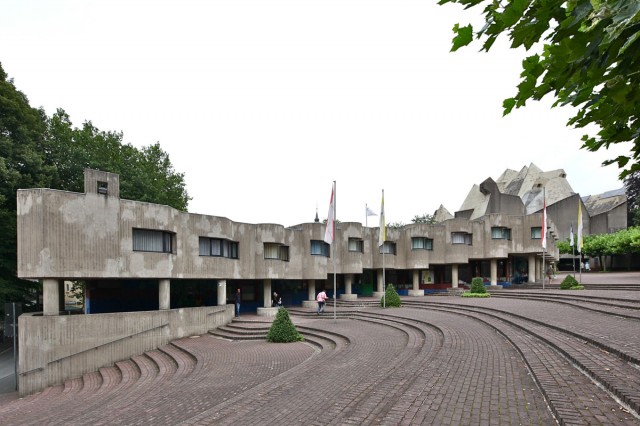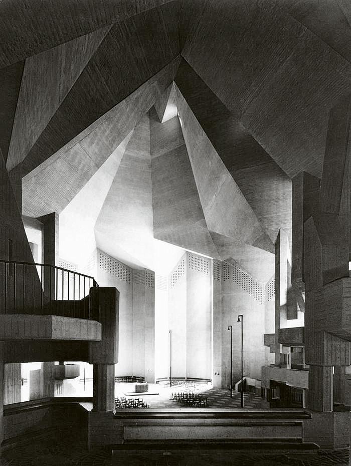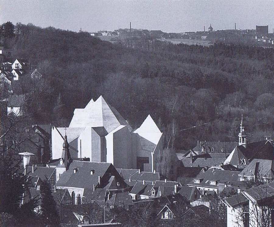 Ante tales ansias de lo leve y lo racional, cuesta creer que apenas una década más tarde erija en Velbert, en el barrio de Neviges, la antítesis arquitectónica.