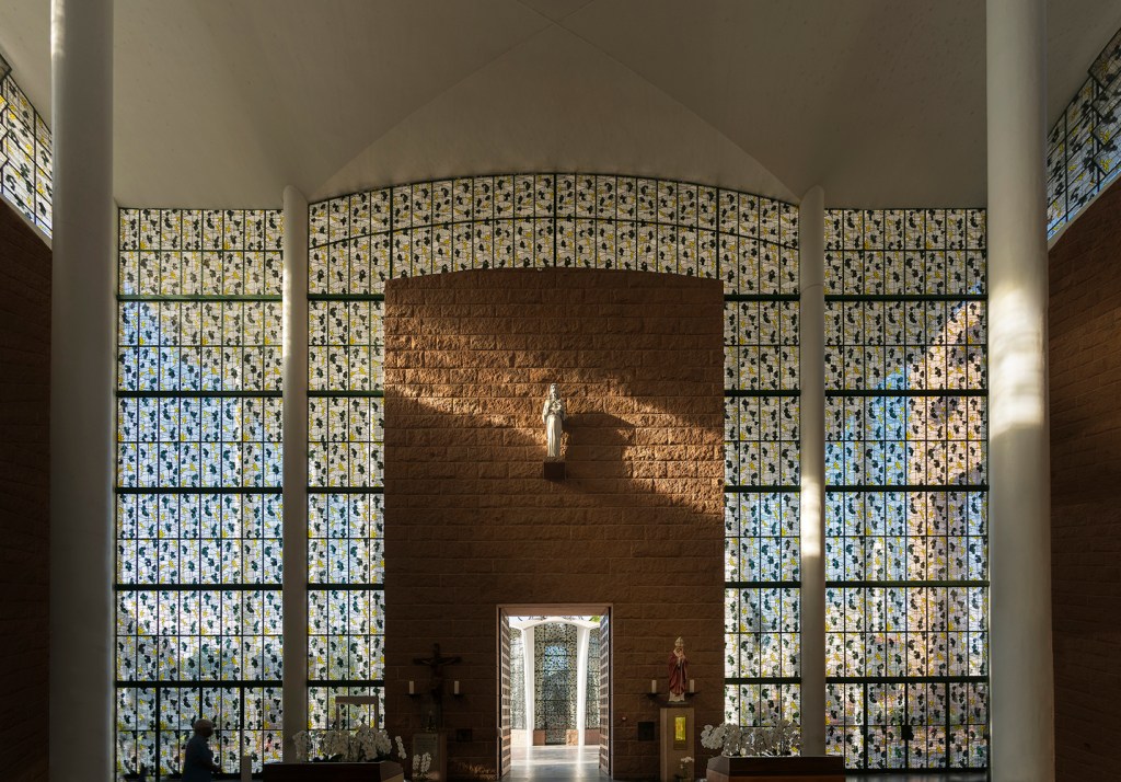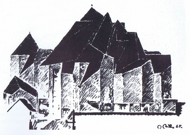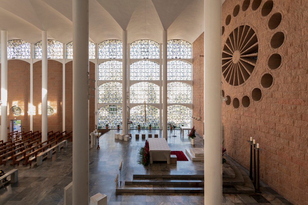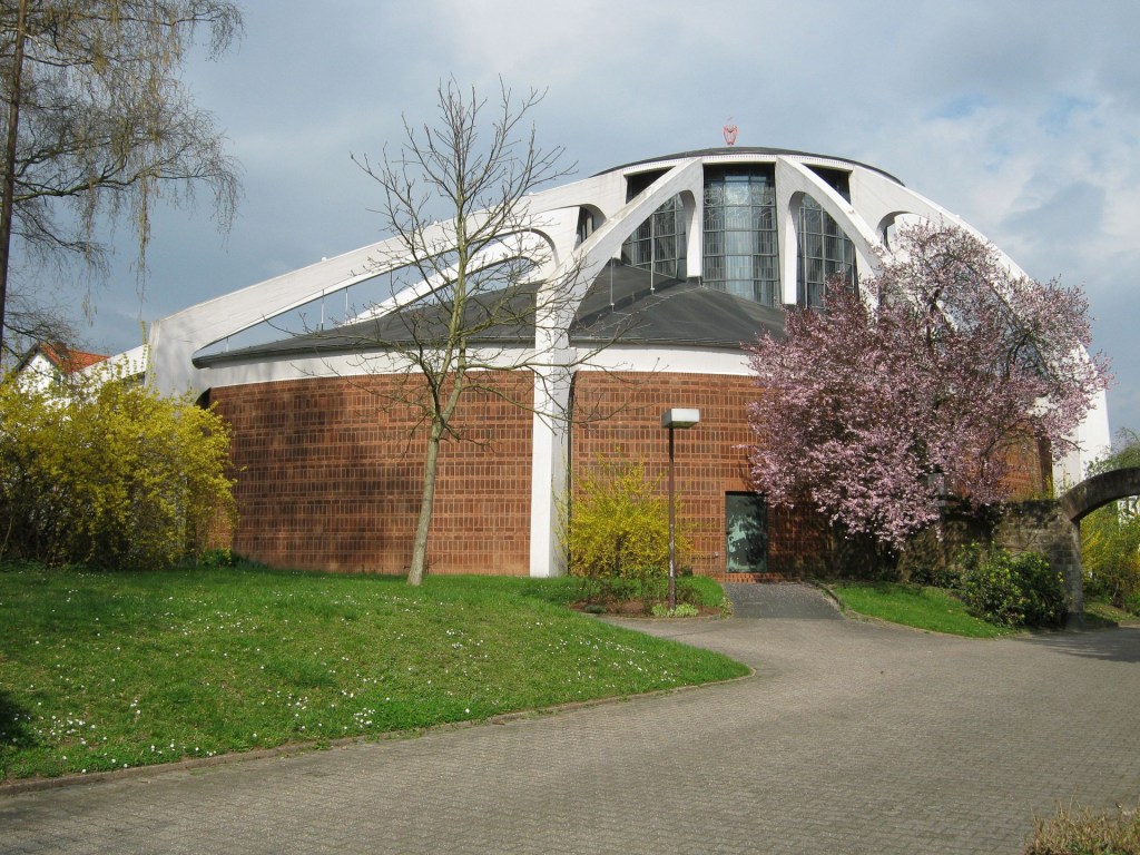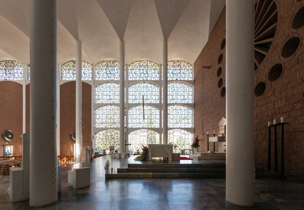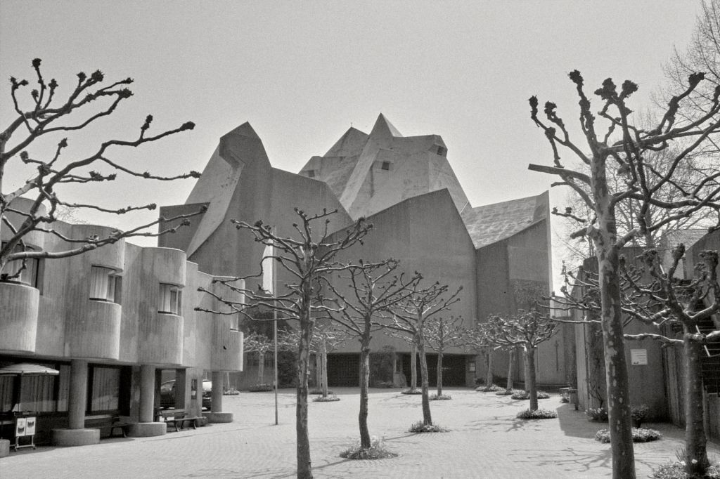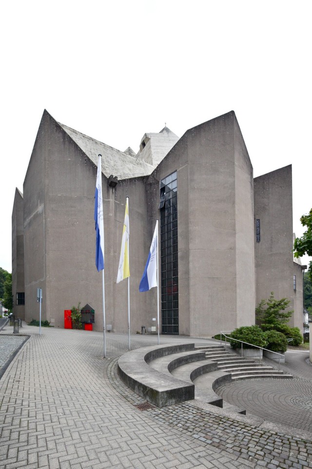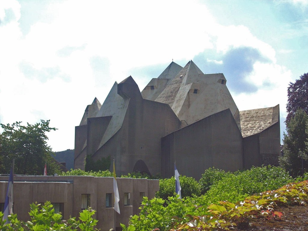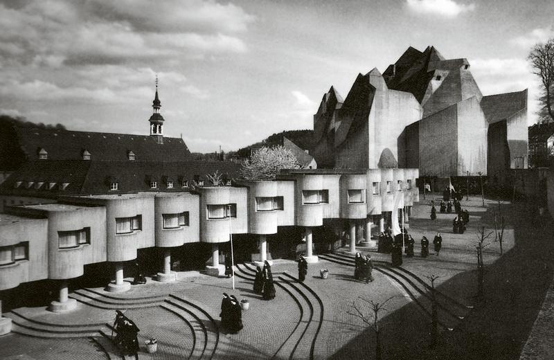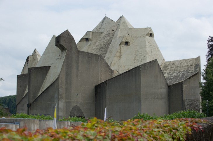 El cristalino bloque de hormigón tallado de la Iglesia María Königin des Friedens (1963-73), que es su obra más famosa pero también la que más críticas le trae por su arcaica rotundidad monumental en tiempos de revoluciones tecnológicas y sociales.