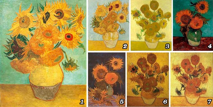 Durante el mes de agosto realiza cuatro pinturas sobre girasoles: primero con tres flores, después con cinco, hasta llegar a la de los doce girasoles sobre un fondo azul, y otro con quince girasoles sobre fondo amarillo.