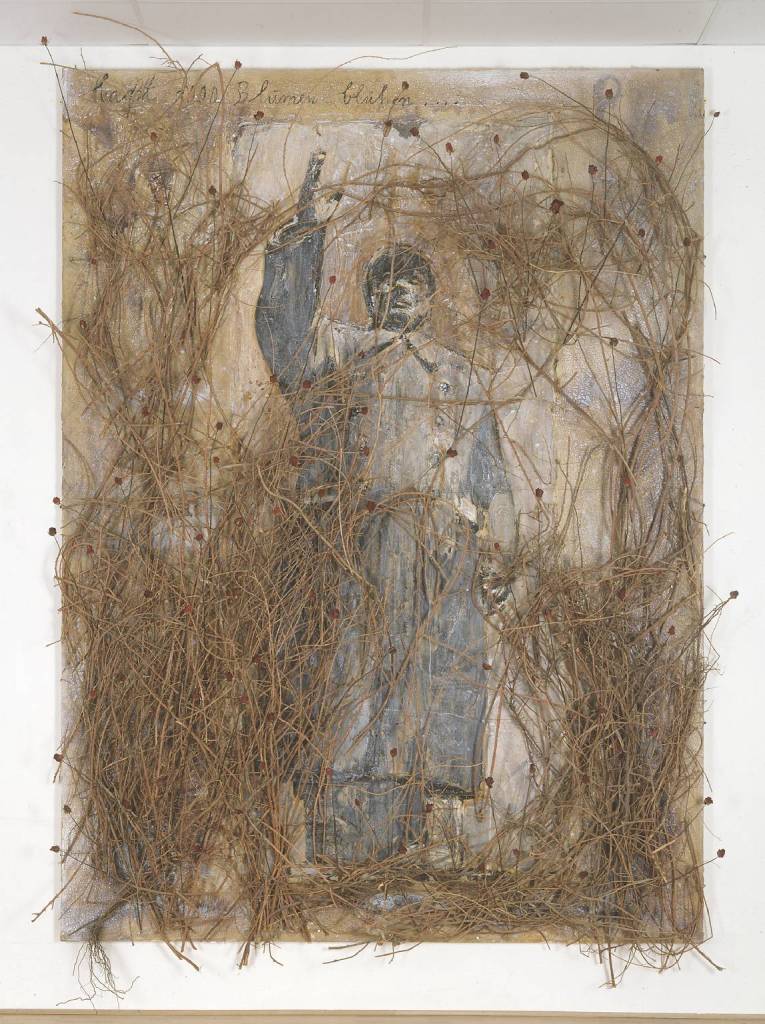 Dentro del neoexpresionismo alemán, su pintura se llena de símbolos, mitológicos y religiosos, una teatralidad que preside todas sus obras, una superposición de capas, una mezcla de materiales, una fusión de pintura, escultura o fotografía que crea un pequeño escenario en donde materializar sus inquietudes filosóficas, históricas o religiosas, como en El ángel caído o El orden de los ángeles.