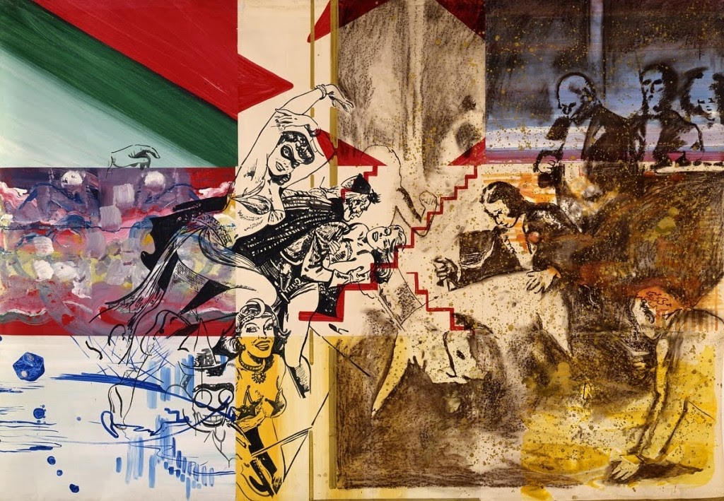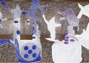 Por ello, no es raro encontrar en las obras de Polke el uso de diversos materiales en un mismo lienzo.
