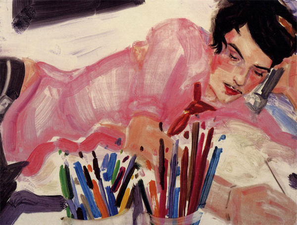 Las últimas obras de Elizabeth Peyton se caracterizan por un tratamiento más abstracto en sus retratos, y colores opacos.