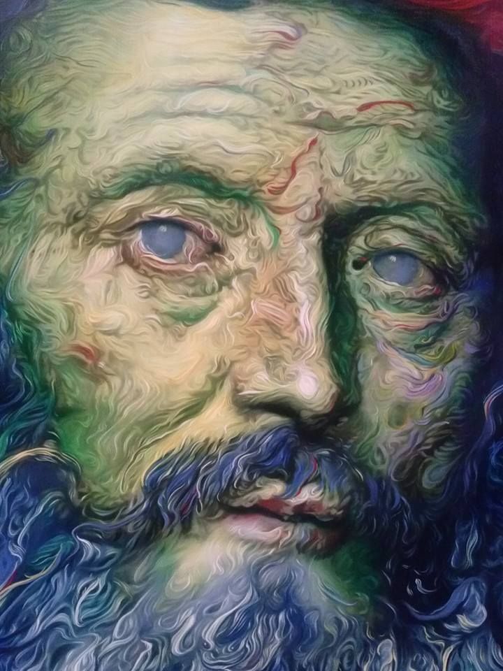 Distorsiona, estira, tira, da vuelta la imagen y cambia el color, generalmente basándose en otras imágenes encontradas, así como en la configuración del fondo.