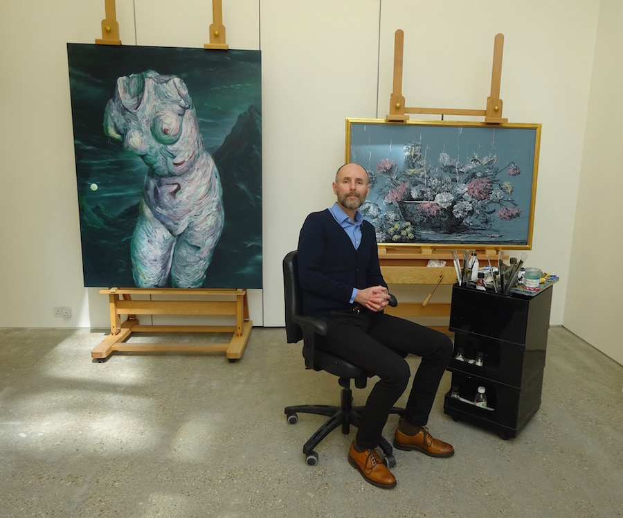 El tema en las pinturas va desde sus primeros paisajes de ciencia ficción sobre composiciones abstractas y bodegones hasta las imágenes figurativas basadas en referencias históricas del arte.