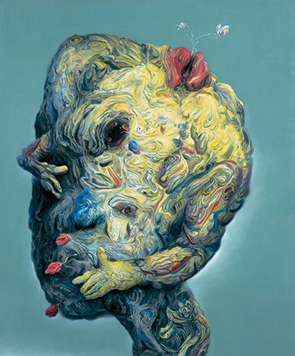 Muchos de los retratos representan seres amorfos que aparentan bultos tumorales que parecen órganos inflamados de gran tamaño.