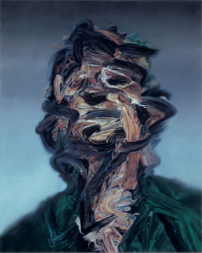 Los retratos de medio cuerpo resultantes están desindividualizados por la acumulación deliberada de demasiados retratos unos sobre otros.