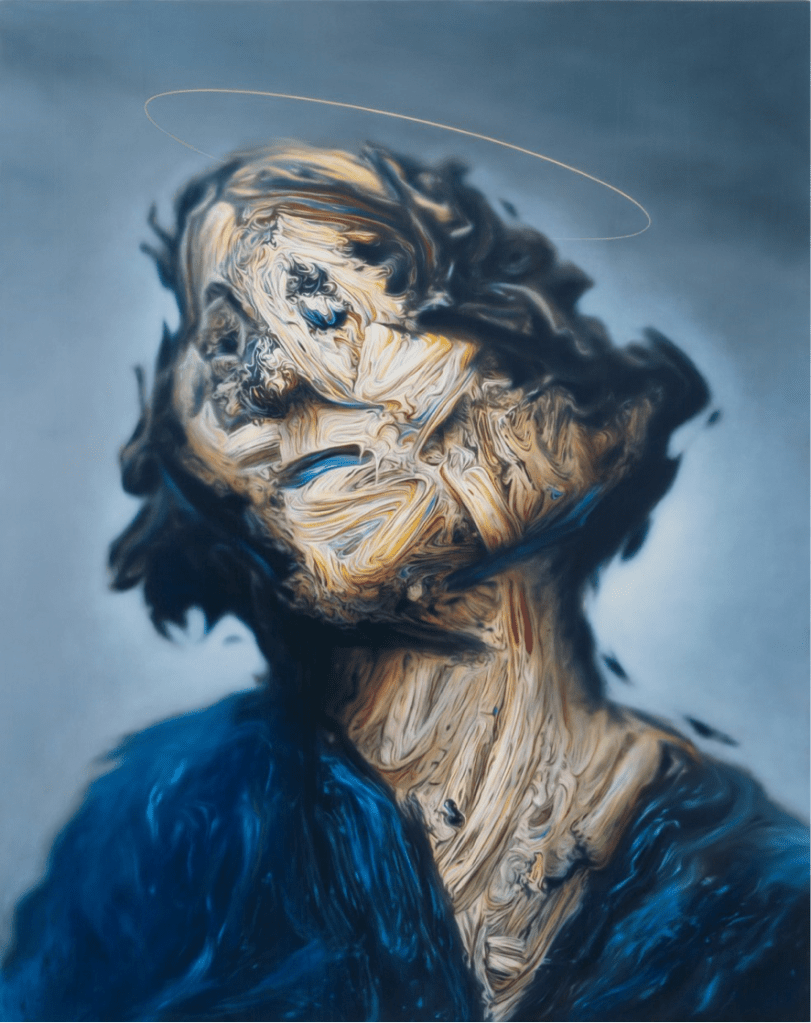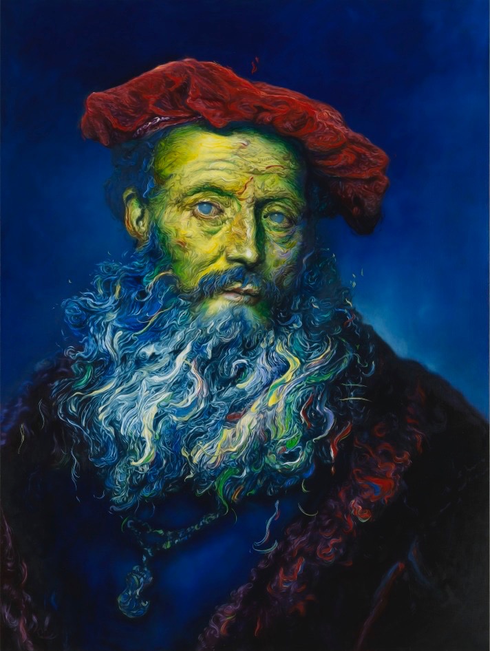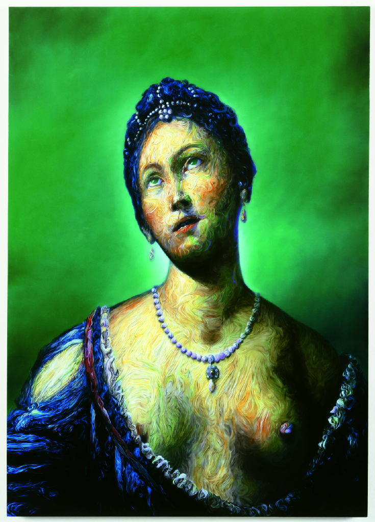 Se apropia de imágenes de artistas vivos y activos, como Frank Auerbach, George Baserlitz, así como de pinturas de artistas históricos, como Guido Reni, Diego Velazquez, Anthony van Dick, Rembrandt, Jean Honore Fragonard, Eugene Delacroix, John Martin, Gustave Courbet, Adolf Menzel, Pierre Auguste Renoir, Vincent van Gogh, Chaim Soutine y Salvador Dali.