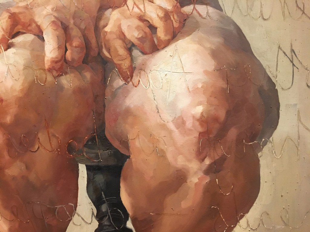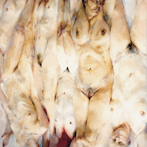 Gran parte de su trabajo presenta carne distorsionada, pinceladas de alto calibre y manchas de color al óleo, mientras que otras revelan la marca del cirujano de una operación de cirugía plástica o anillos blancos de «blanco».