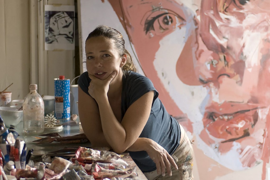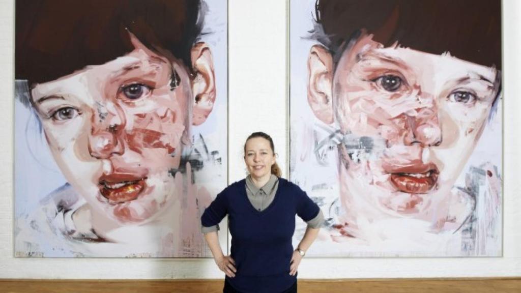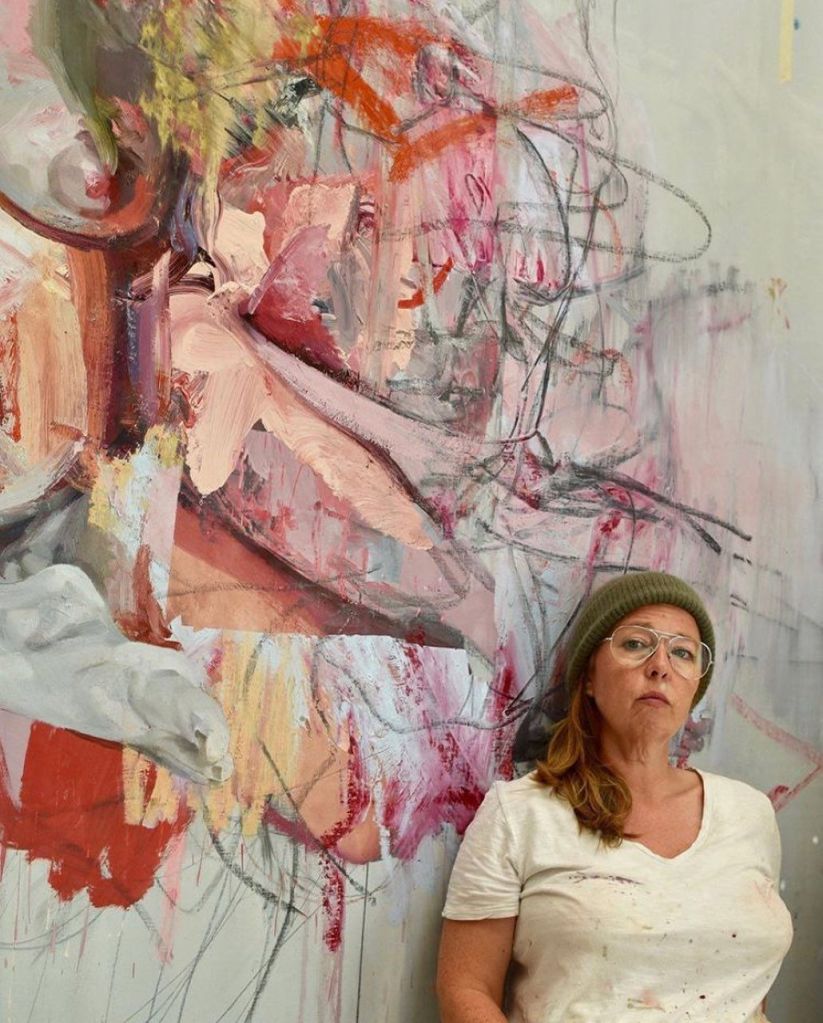 Saville también es conocida por su uso de lienzos masivos que permiten al espectador ver los detalles y las capas de pinturas al óleo para crear su estética característica de movimiento y realismo abstracto.