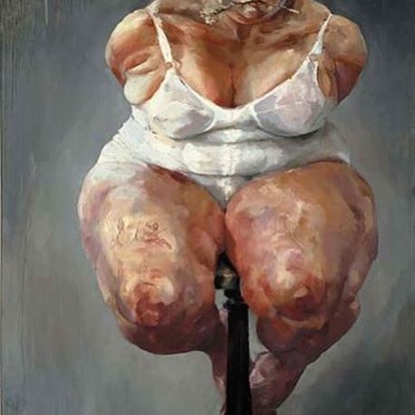 De hecho, la mayoría de sus desnudos representan mujeres con sobrepeso o magulladas, lucha constante entre el cuerpo femenino y los ideales corporales cultura pop contemporánea ha estado tratando de imponerle.