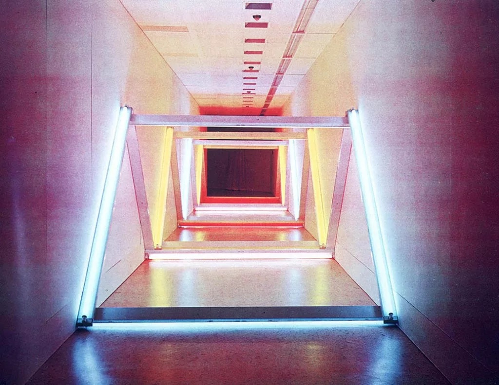 En estas obras, más complejas, el artista estudia aspectos arquitectónicos, como en Untitled, de 1968, una barrera de neones que cierra la propia sala a la que ilumina.
