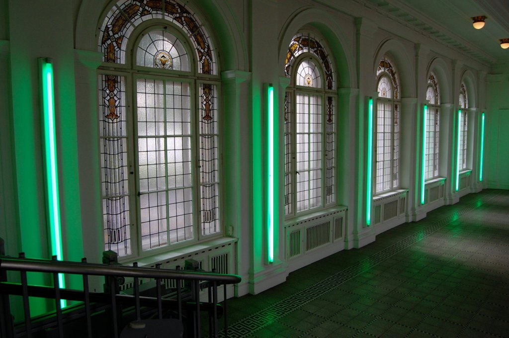 1968 después de estos trabajos, llegan sus grandes instalaciones de luces fluorescentes, destaca la que realiza para Documenta 4 en Kassel.