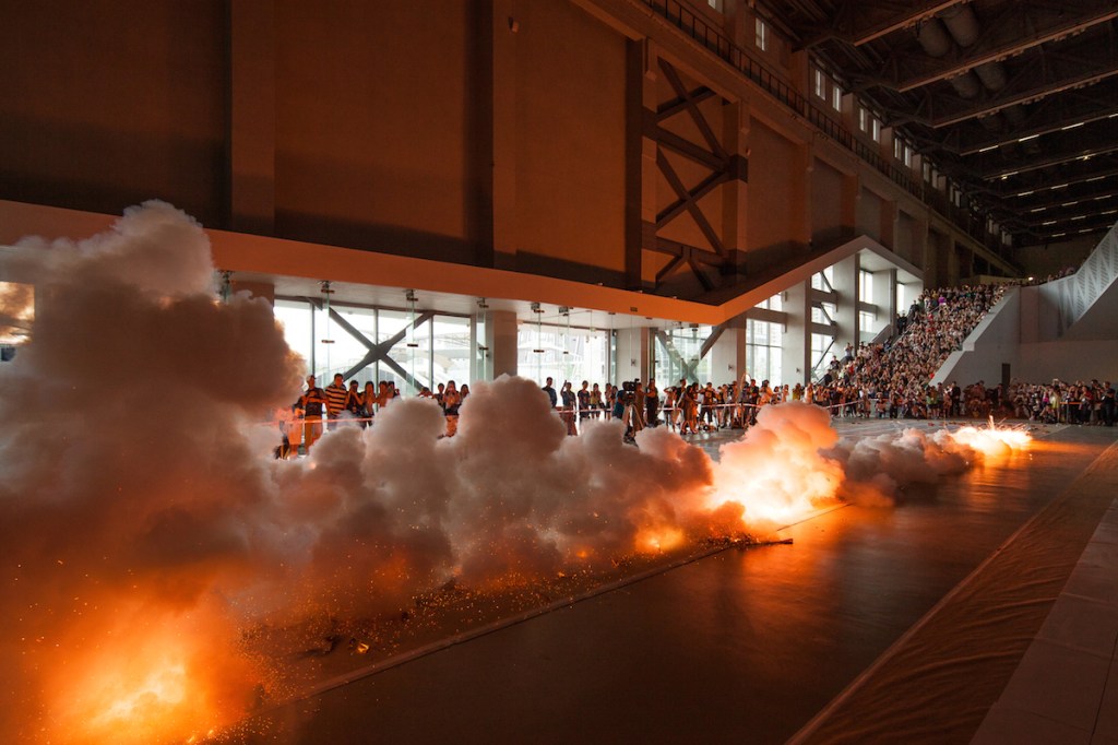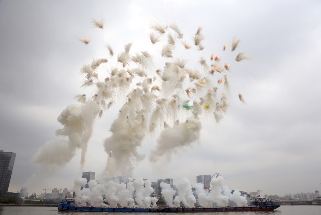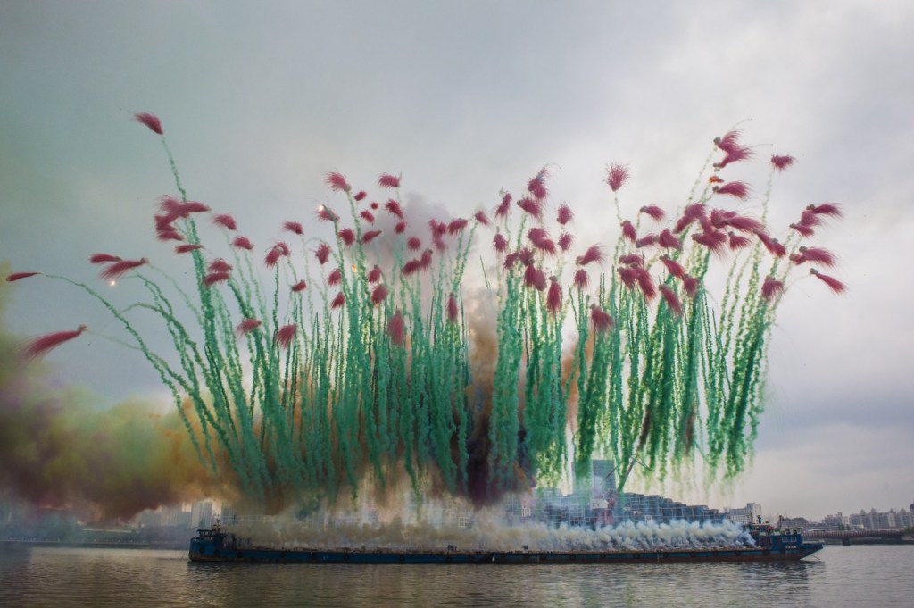 El día de la inauguración Cai Guo-Qiang presenta su evento explosivo a gran escala, es el primero que realiza de día en China.
