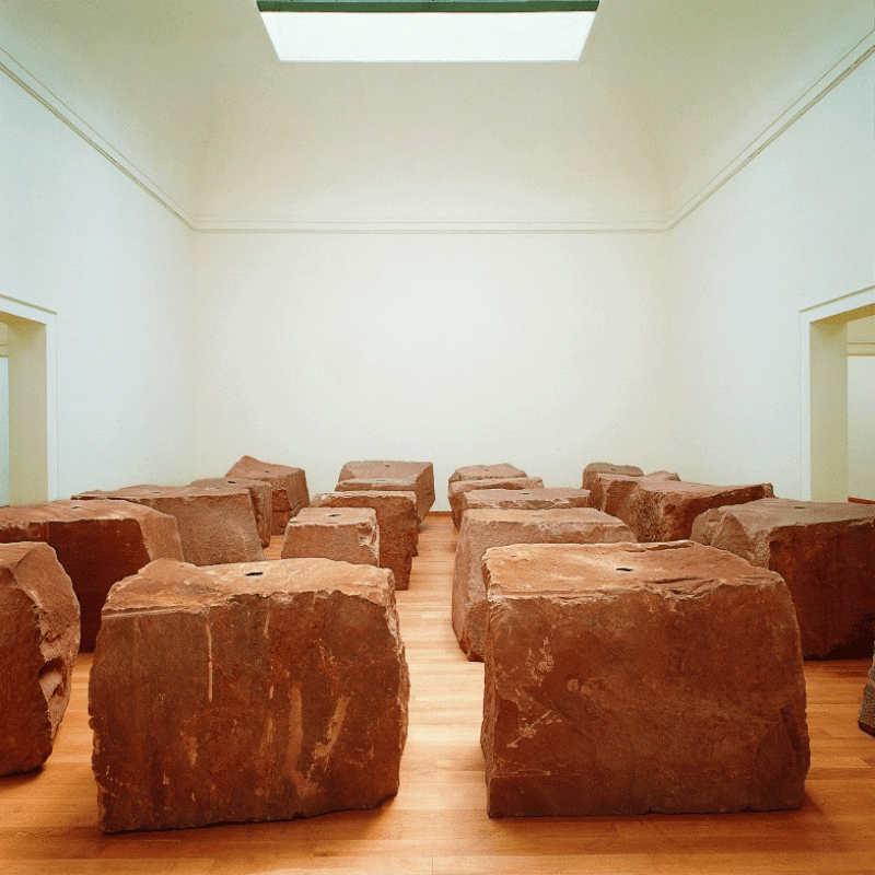 16 bloques de arenisca llenan el escenario, es Campo Vacio, Void Field de 1989, campo vacío.