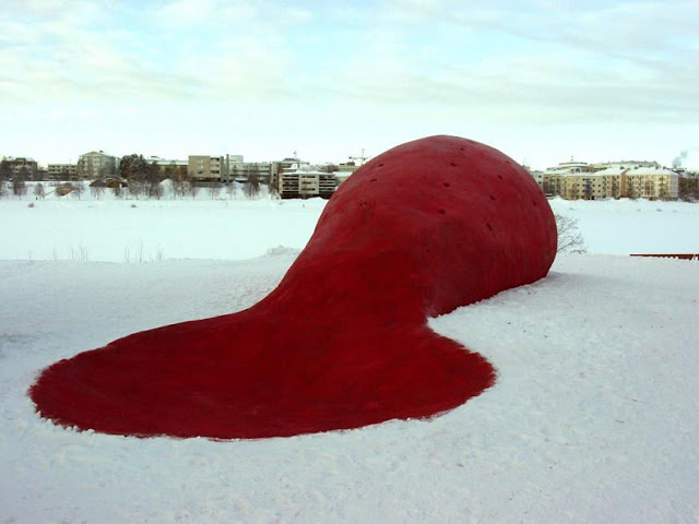 Juega con la escala humana haciendo que sus dimensiones hagan imposible verla desde un solo ángulo, de manera que el espectador tiene que caminar a su alrededor.
