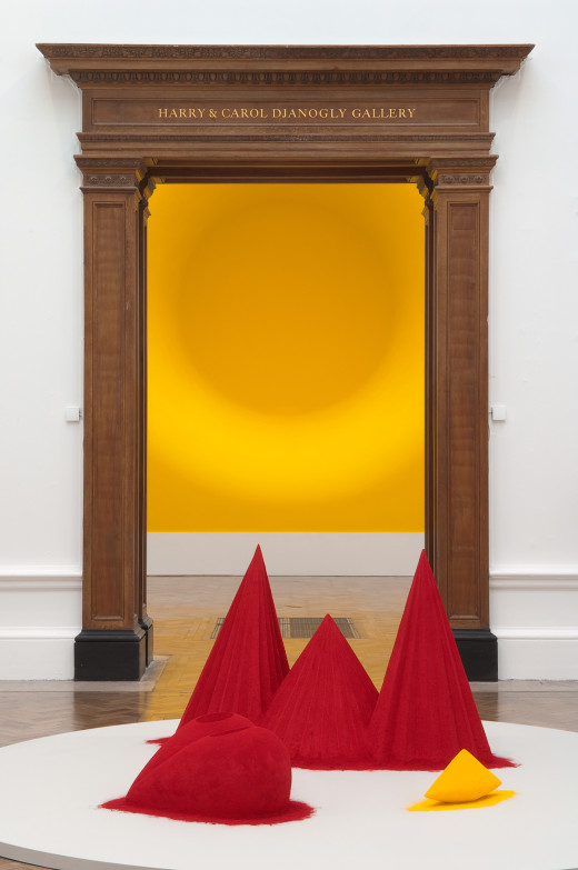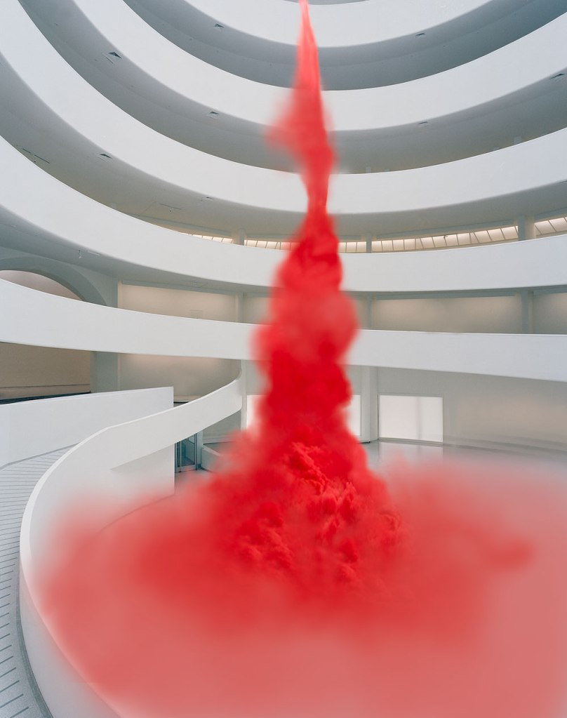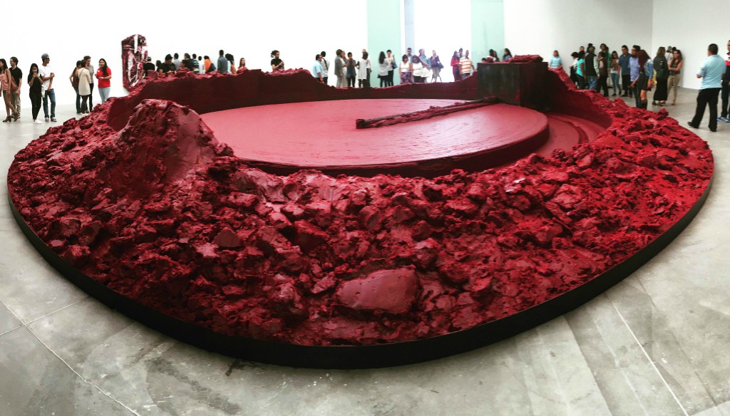 El pigmento es utilizado en la vida diaria y religiosa hindú, pero además, en sus tradiciones recuerda al polvo que se esparce en la celebración del Festival de Colores. Kapoor lo utiliza para moldear formas que parecen surgir de la nada, como icebergs o estructuras geométricas que simulan fragilidad.