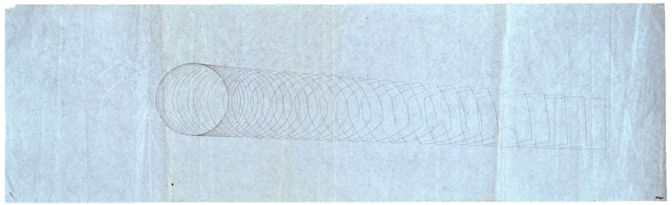 1973 sus inquietud artística se apreciar desde el boceto de una de sus primeras obras Circle to Square Drawing en la que a través de una línea contínua en espiral logra una metamorfosis de la geometría.