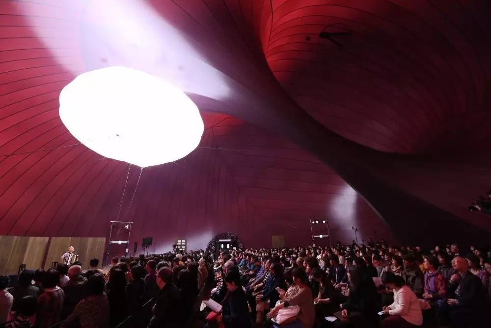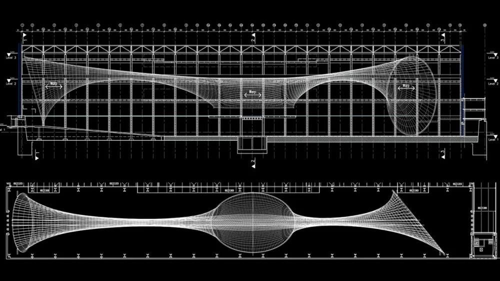 Un ambicioso proyecto realizado en colaboración con el arquitecto japonés Arata Isozaki y que supone un nuevo concepto de edificio público: una gran membrana inflable que puede desmontarse tras el espectáculo y trasladarse a otro espacio.