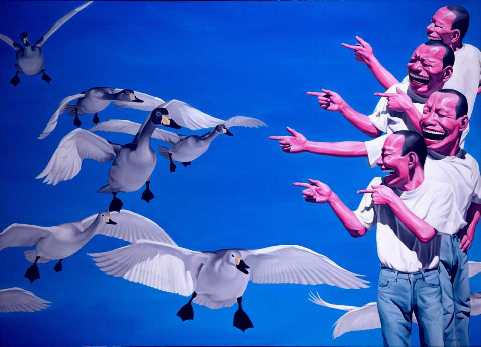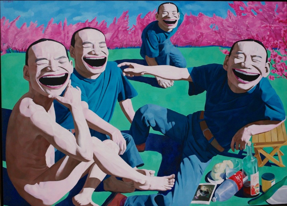 1989, se inspira en una pintura de Geng Jianyi en una exposición de arte en Pekin, que muestra la propia cara risueña de Geng.